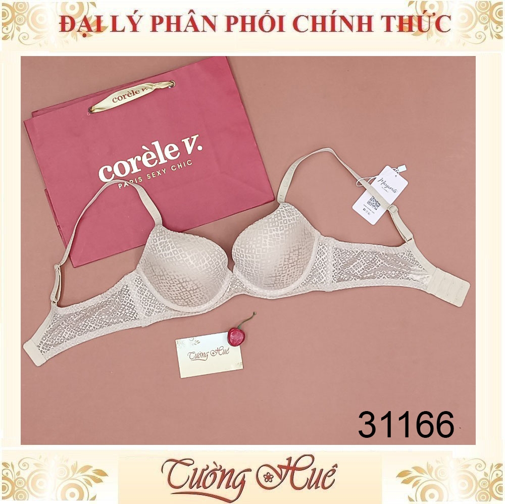 Áo lót nữ Corèle V. Có Gọng Mút Vừa 1.5cm Nâng Ngực Phối Ren Lưới 31166.
