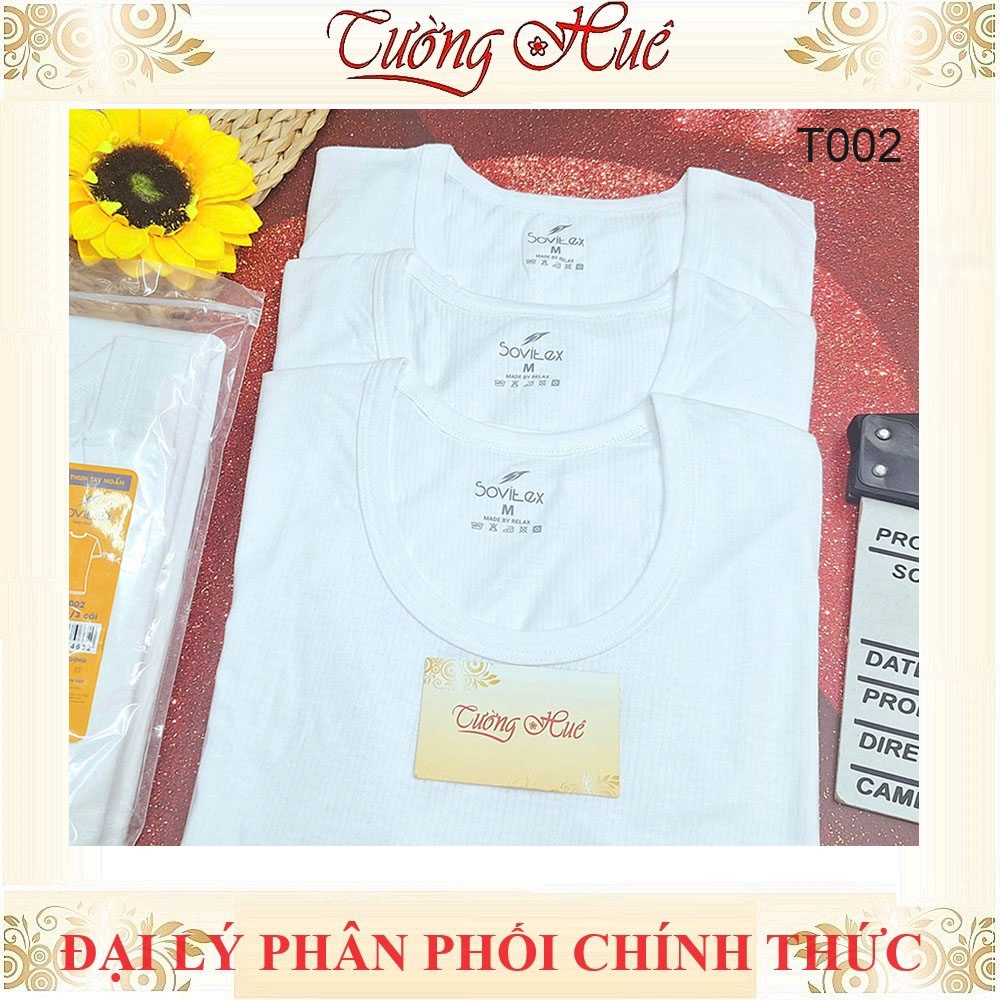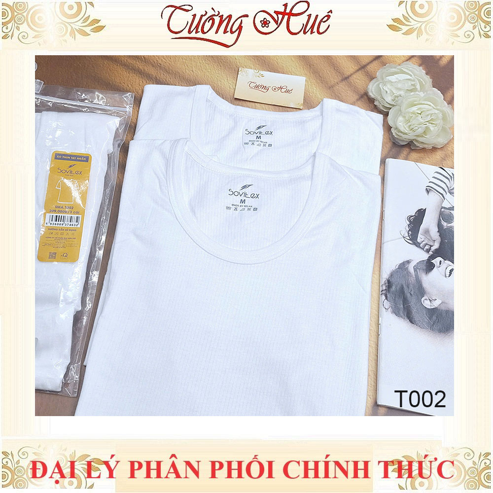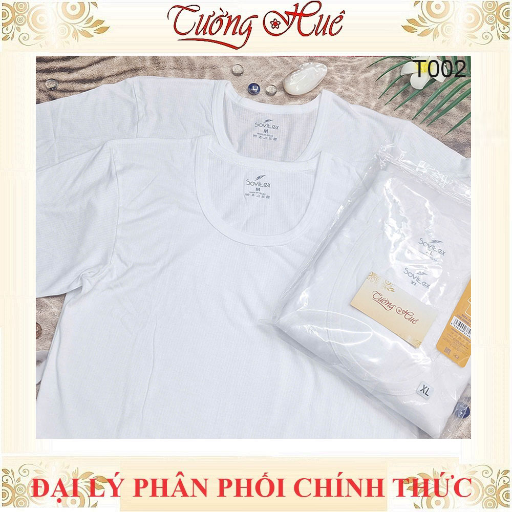 Áo Lót Nam Trắng Tay Ngắn Sovitex By relax T002 Cổ Chữ U Cotton Thun Co Dãn Không Viền May 2 Bên Hông.