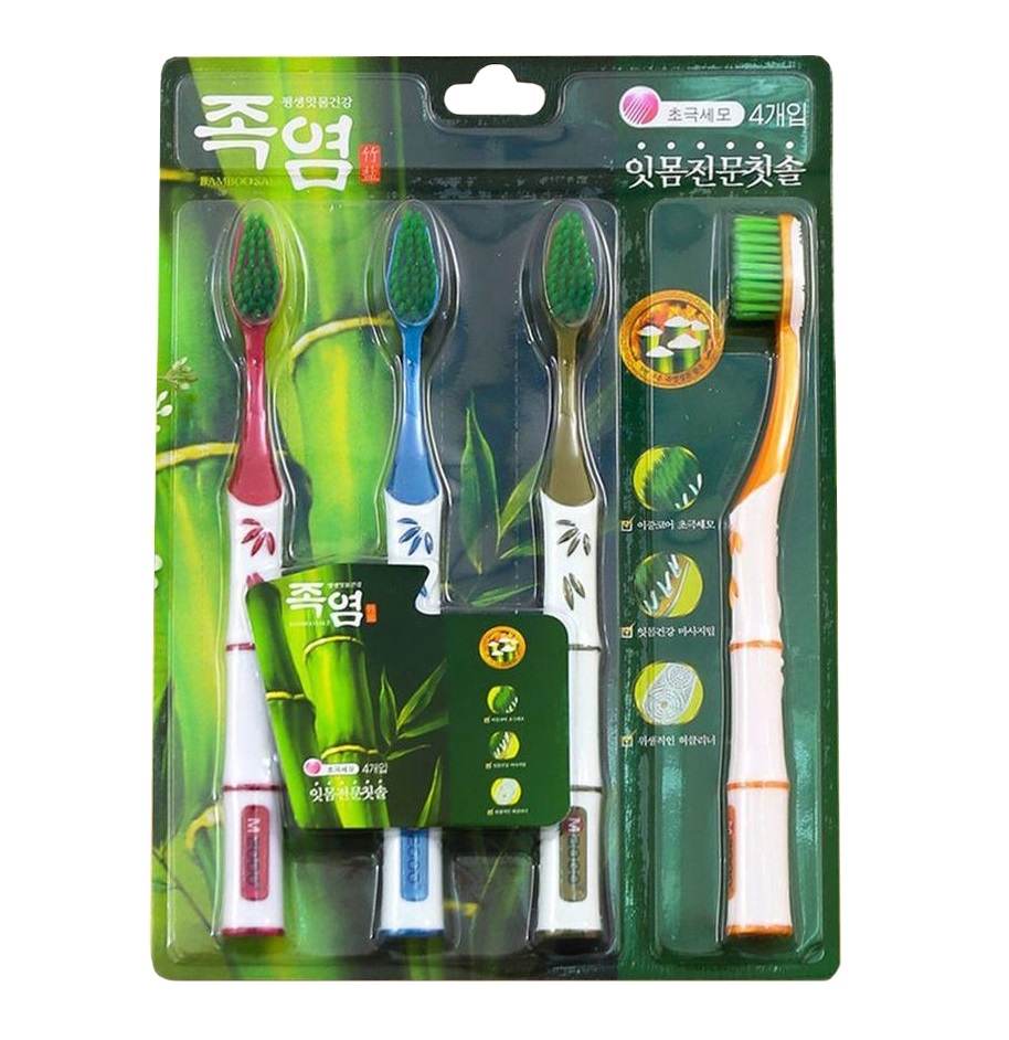 Vỉ 4 Cây Bàn Chải Đánh Răng Hàn Quốc Bamboo Salt Tinh Chất Muối Tre