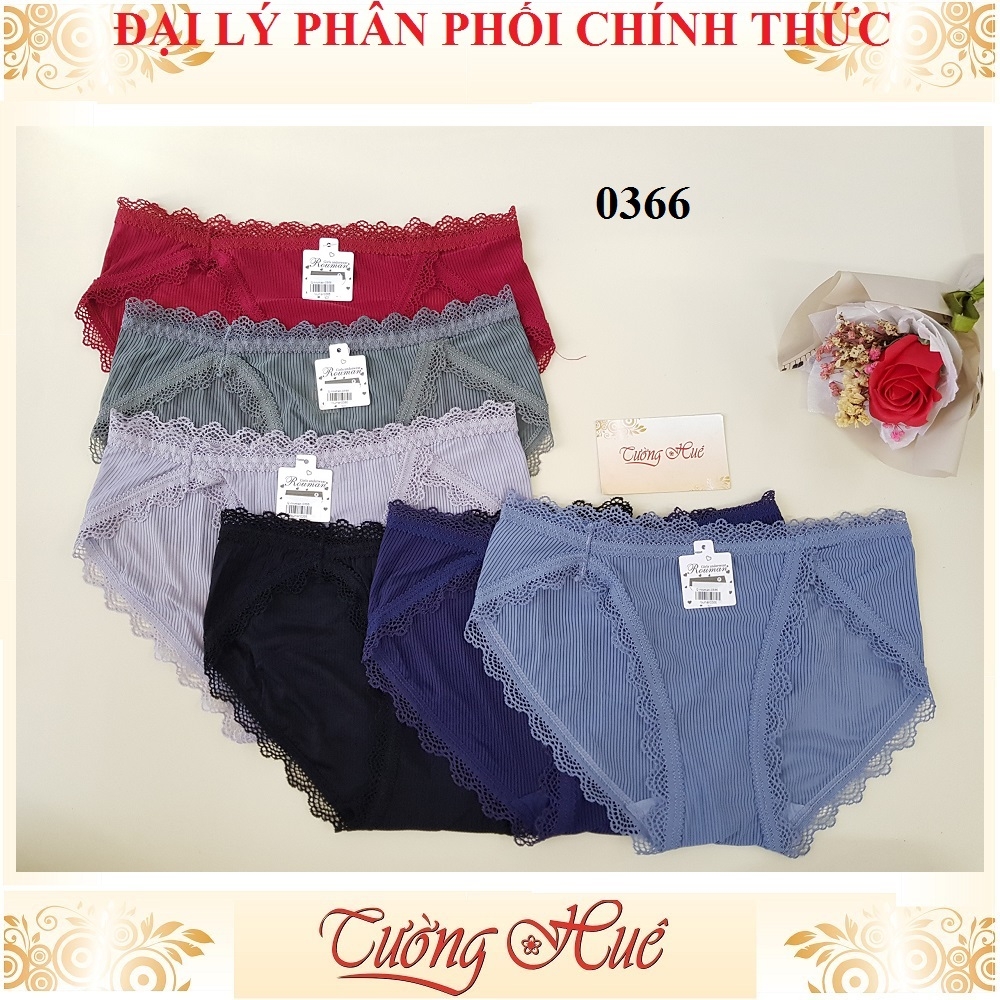 Quần lót nữ Rouman 0366 thun sọc viền ren MÀU NGẪU NHIÊN.