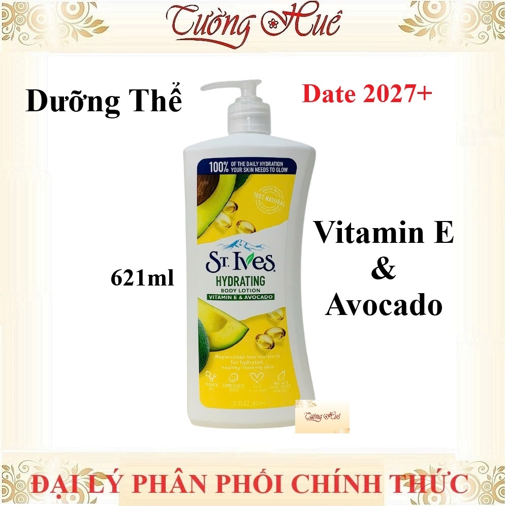 Sữa dưỡng thể St.Ives Hydrating vitamin E & Avocado Body Lotion với thành phần chiết xuất từ quả bơ chứa giàu hàm lượng vitamin E giúp cải thiện hiệu quả làn da khô sạm thiếu sức sống trở nên mềm mịn và ẩm mượt hơn.