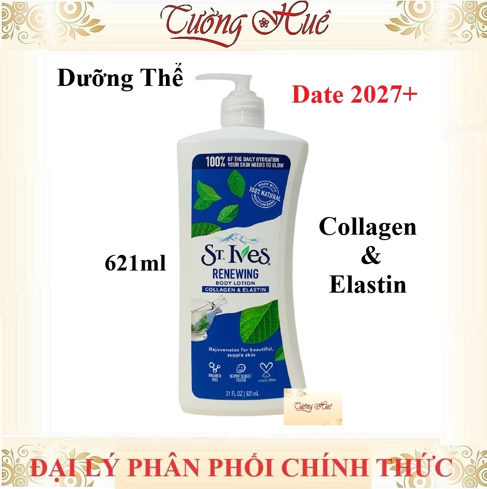 Sữa dưỡng thể St.Ives Collagen Renewing Collagen & Elastin Body Lotion với thành phần chiết xuất từ dầu đậu nành giúp phục hồi da, đẩy lùi quá trình lão hóa da, làm săn chắc da. Làm tăng độ đàn hồi cho da, dưỡng da căng mịn từ sau bên trong.