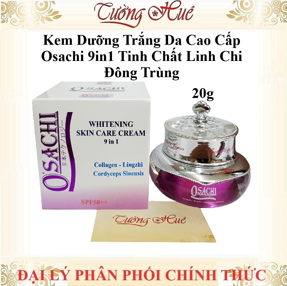 Kem Dưỡng Trắng Da Cao Cấp O'sachi 9in1 Tinh Chất Linh Chi Đông Trùng - 20g với chiết xuất từ Linh Chi, Đông Trùng Hạ Thảo, Collagen và các loại Vitamin đã tạo ra dòng kem dưỡng da hoàn hảo - 9 tác dụng dưỡng da trong 1 sản phẩm: