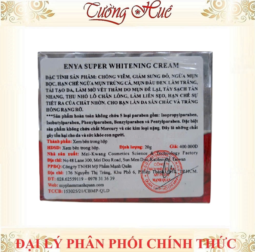 Tường huê Shop là đại lý phân phối chính thức Mỹ phẩm Enya. Sản phẩm là hàng chính hãng 100%, có tem chống giả và giấy tờ đầy đủ.