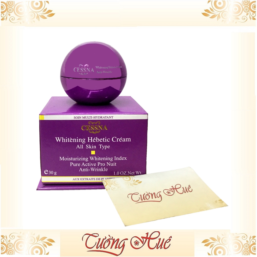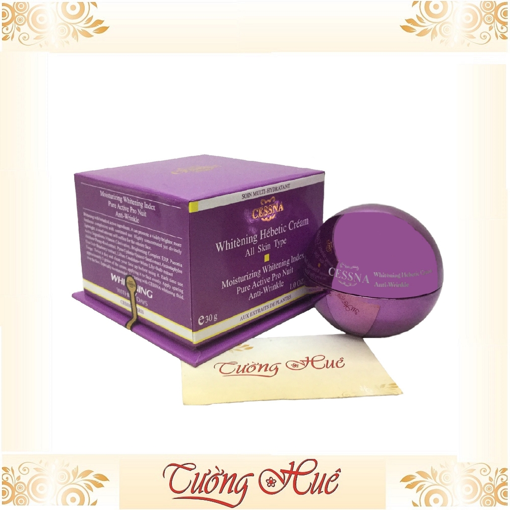 Kem trắng da, giữ ẩm, chống nhăn Cessna Whitening Hebetic Cream All Skin Type - Tím - 30g: