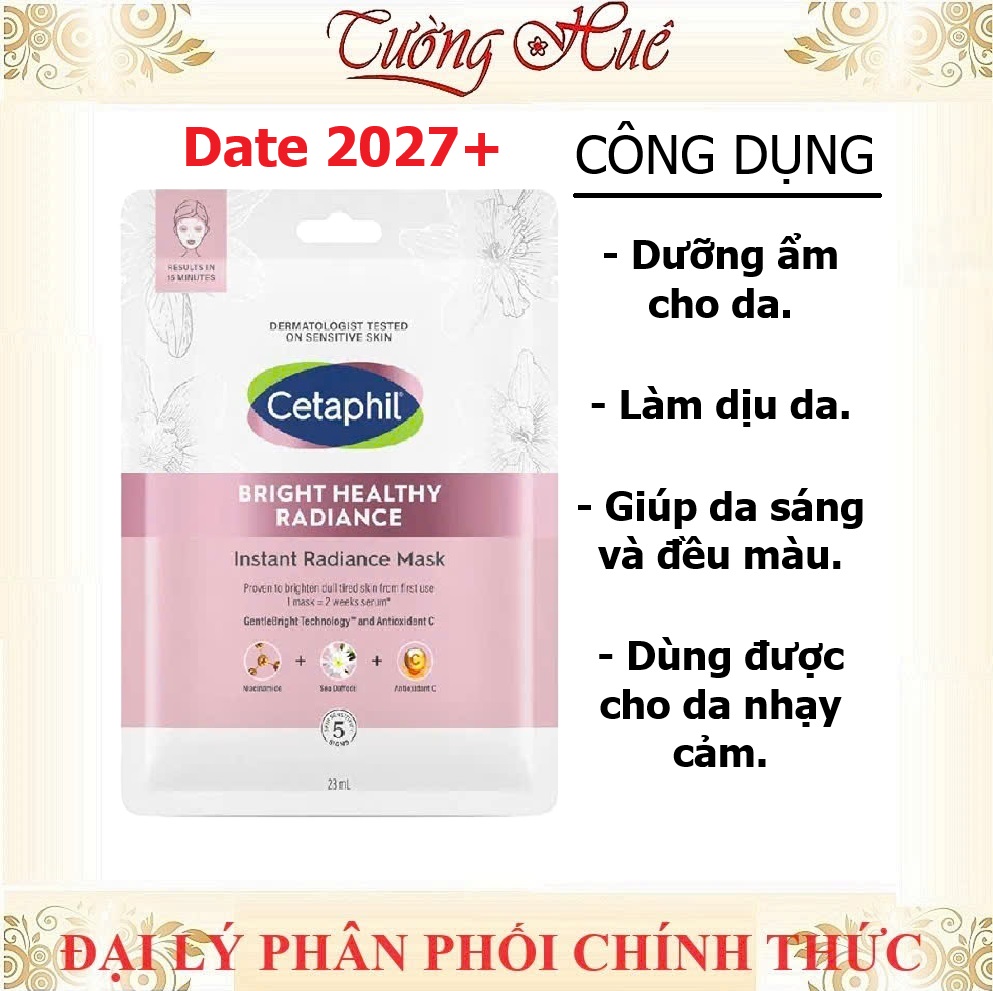 Mặt Nạ Dưỡng Sáng Và Cấp Ẩm Cetaphil Bright Healthy Radiance Instant Radiance Mask với công nghệ GentleBright Technology và thành phần lành tính dưỡng da trắng sáng phù hợp cho cả làn da nhạy cảm mang lại làn da mịn màng, đủ ẩm và tươi mới.