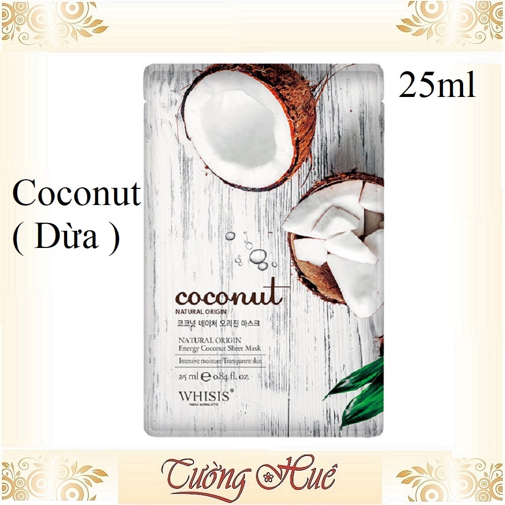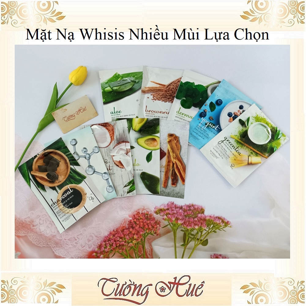 Mặt nạ Whisis với chiết xuất từ các thành phần thiên nhiên như Nha đam, Than hoạt tính, Dừa, Collagen,...giúp nuôi dưỡng làn da khỏe mịn, tươi trẻ hơn từ sau bên trong. Đồng thời, còn cấp ẩm - hạn chế tình trạng da khô, thiếu ẩm.
