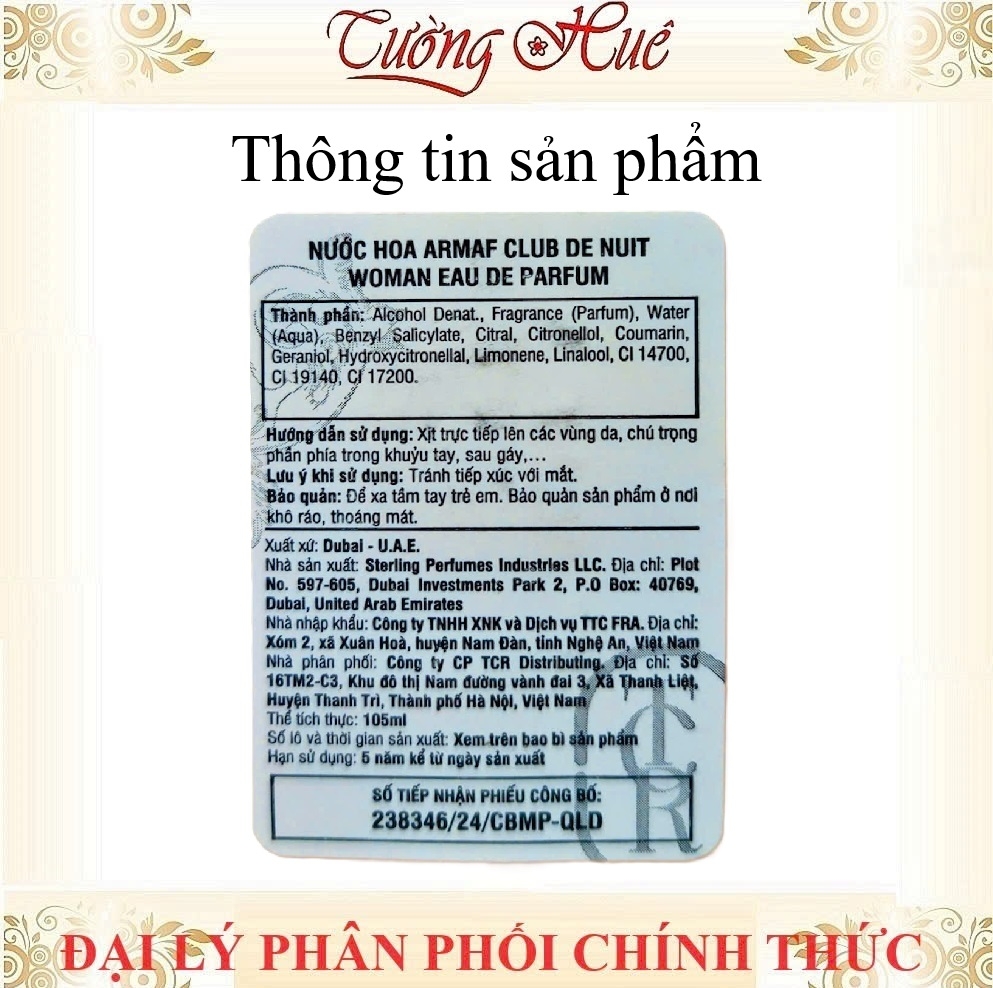 Sản Phẩm Nước Hoa Nữ Armaf Club De Nuit Woman EDP 105ml đã có mặt tại Tường Huê Shop:
