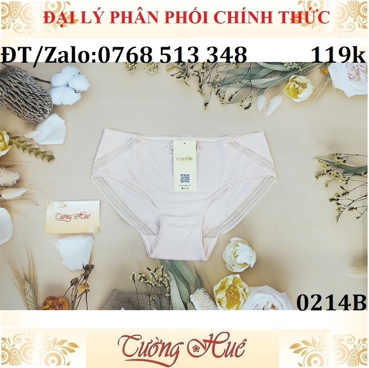 Quần lót nữ Corèle V. 0214B trơn thun lạnh siêu mịn phối viền ren, lưng vừa (FORM CHÂU ÂU).