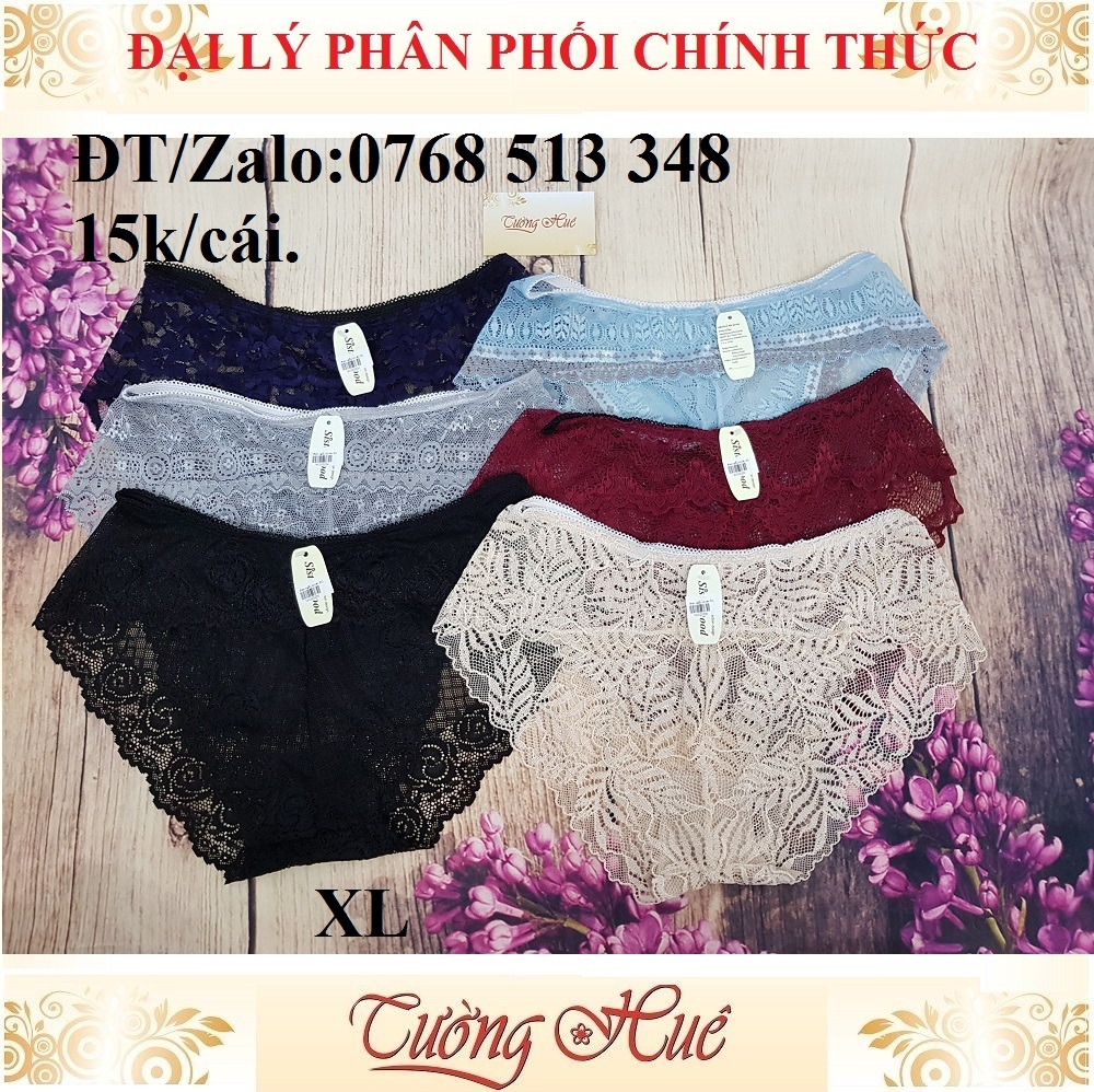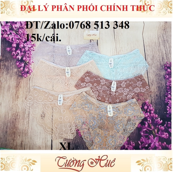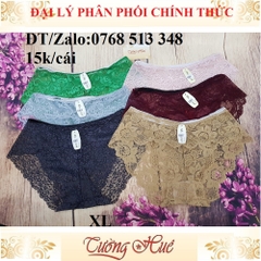Với thiết kế ren cách điệu tinh tế, kiểu dáng sexy & sang trọng cho người mặc sức hấp dẫn khó cưỡng là sự lựa chọn tuyệt vời cho chị em phụ nữ. Chất vải ren thông thoáng, đường may tỉ mỉ ôm dáng tôn lên đường nét tạo sự quyến rũ tuyệt đối. Lưng thun với độ co giản tốt không gây ngứa,không phai màu, không xù lông và hạn chế để lại vết hằn trên cơ thể. Đáy quần được thiết kế 2 lớp: lớp ngoài là vải ren thêu, lớp trong là thun cotton hút ẫm siêu tốt. Màu sắc da dạng và thanh lịch cho bạn thoải mái lựa chọn, tha hồ phối đồ.