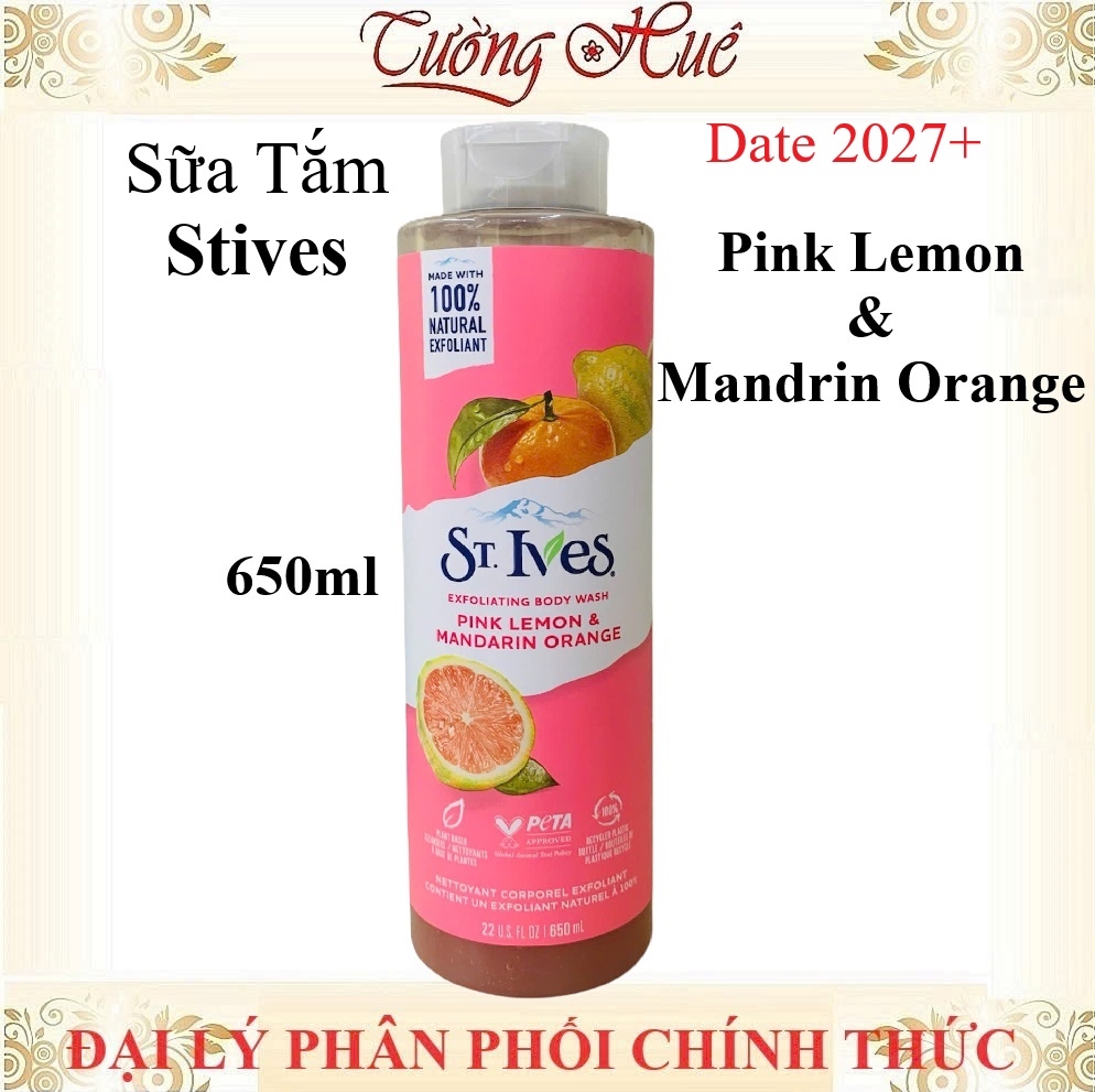 - St. Ives Exfoliating Pink Lemon & Mandarin Orange: Chiết xuất từ cam, chanh có khả năng dưỡng da sáng mịn, cung cấp dưỡng chất cần thiết cho da - ngừa lão hóa. Ngoài ra, còn chứa hạt li ti tẩy da chết dịu nhẹ. Hương cam chanh tươi mát, sảng khoái.