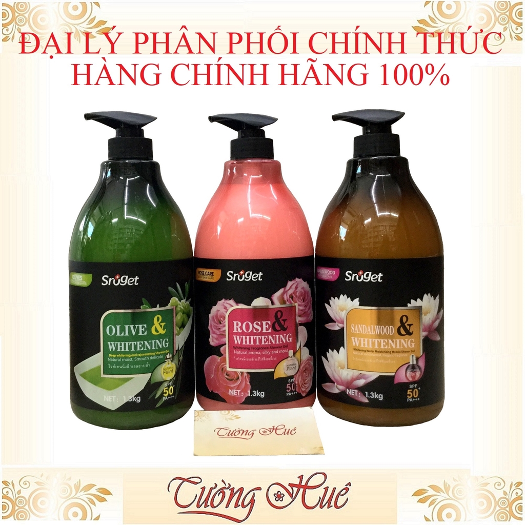 Sữa Tắm Sroget với các chiết xuất từ thành phần tự nhiên như Dầu Oliu, Hoa Hồng, Gỗ Đàn Hương,...giúp nuôi dưỡng làn da trắng sáng tự nhiên, làm mềm mịn da, tăng độ đàn hồi giúp da luôn trẻ trung, rạng rỡ.