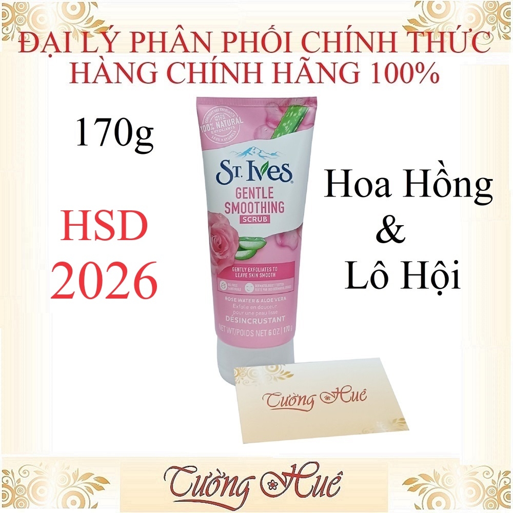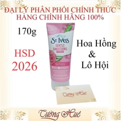 + Tuýt rửa tẩy da chết St. Ives Gentle Smoothing Rose Water & Aloe Vera - 170g: chiết xuất từ Hoa Hồng và Nha Đam giúp dưỡng da mềm mịn, ngừa lão hóa, cung cấp độ ẩm cần thiết cho da, chăm sóc da dịu nhẹ - dành riêng cho da nhạy cảm.