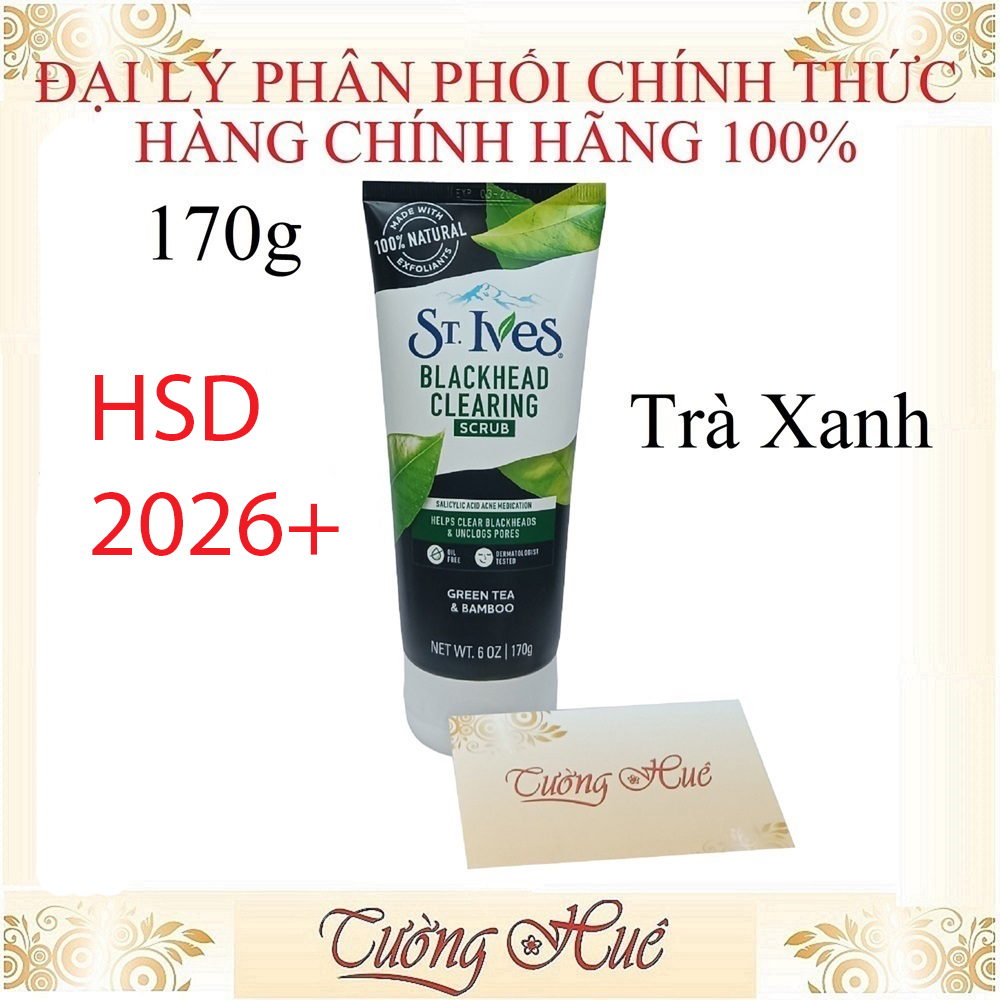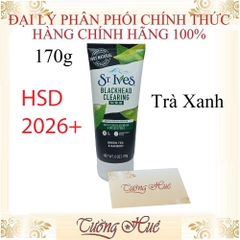 + Tuýt rửa tẩy da chết St. Ives Blackhead Clearing Green Tea Scrub - 170g: chiết xuất từ trà xanh - thành phần có tỉnh kháng khuẩn và ngừa mụn cao, làm sạch lỗ chân lông, giúp da trắng mịn, đều màu. Có hạt Scrub nhỏ li ti tẩy da chết phù hợp cho da mặt.