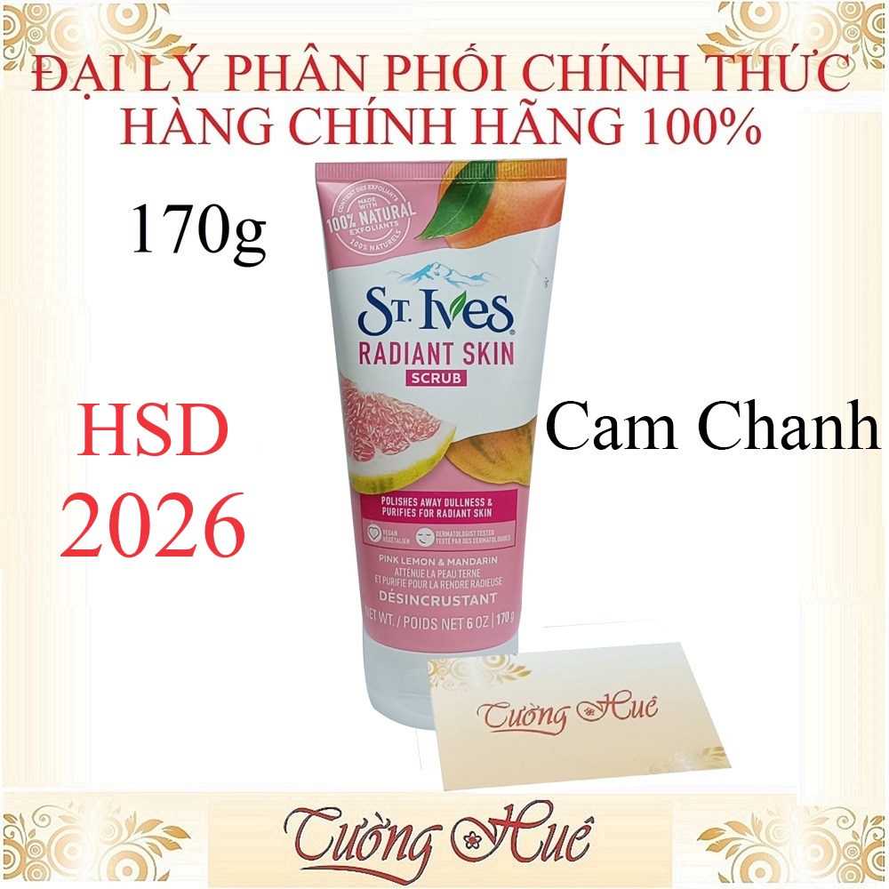 + Tuýt rửa tẩy da chết St. Ives Radiant Skin Pink Lemon & Mandaring Orange Scrub - 170g: Cung cấp lượng Vitamin C cho da, dưỡng da căng mịn, làm sáng da, cân bằng độ pH cho da. Có hạt Scrub nhỏ li ti tẩy da chết phù hợp cho da mặt.