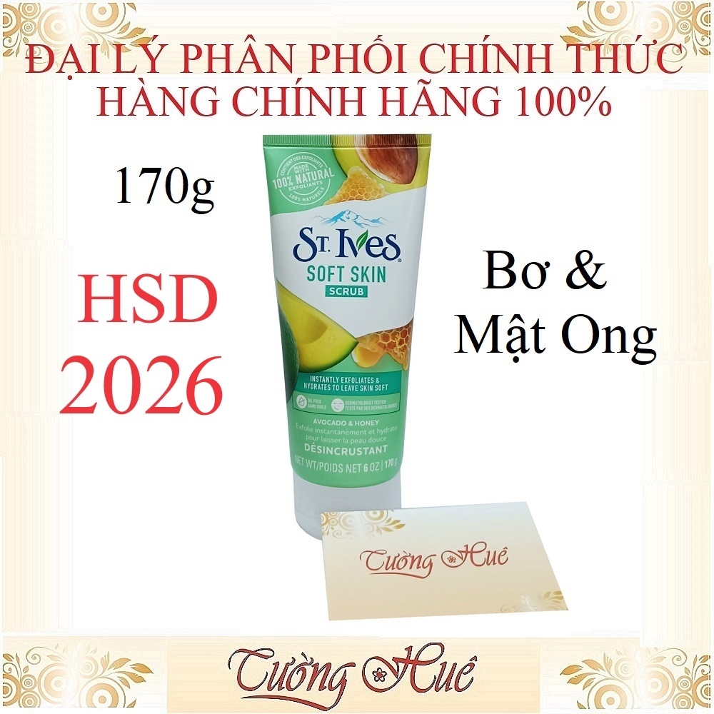 + Tuýt rửa tẩy da chết St. Ives Soft Skin Avocado & Honey - 170g: chiết xuất từ Quả Bơ và Mật Ong giúp làm mềm da, cung cấp ẩm cho da từ sâu bên trong, ngừa da khô, bong tróc.
