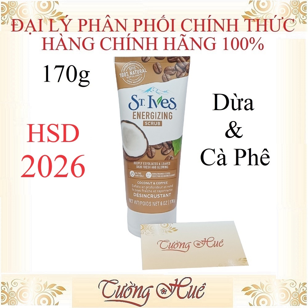 + Tuýt rửa tẩy da chết St. Ives Energize Coconut & Coffee Scrub - 170g: giúp dưỡng da mềm mịn, cung cấp ẩm, ngừa lão hóa da. Có hạt Scrub nhỏ li ti tẩy da chết phù hợp cho da mặt.